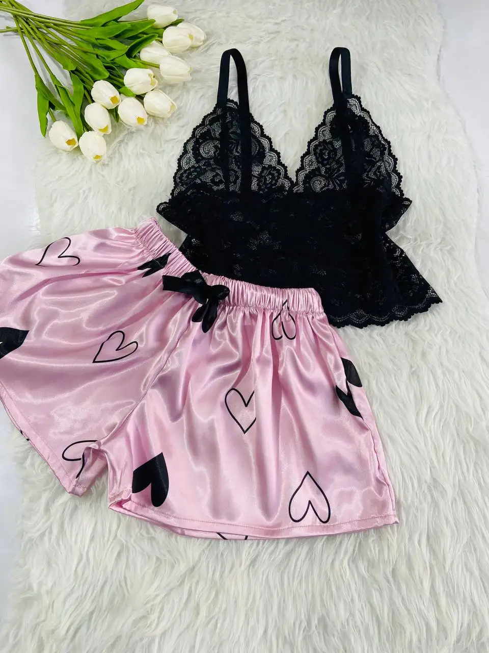 ست تاپ توری شلوار ساتن کد 01