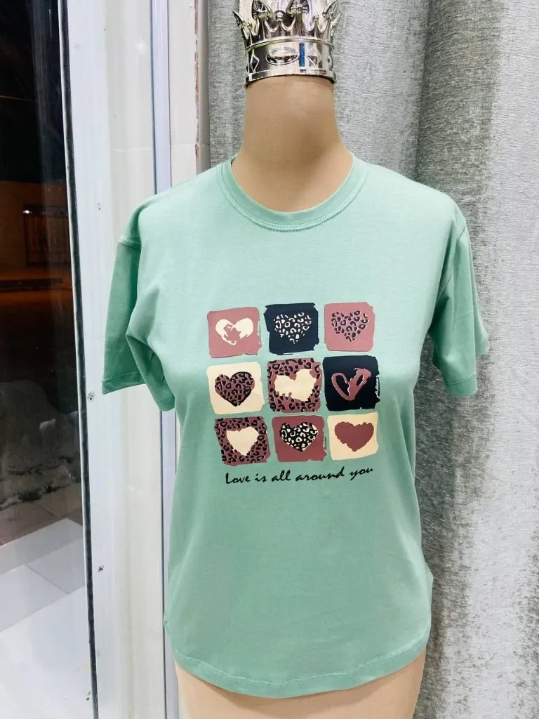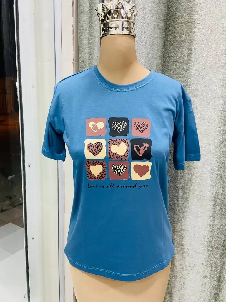 این تیشرت با چاپ قلبی جذاب، انتخابی مناسب برای استایلهای روزمره است و ظاهر دلنشینی به تیپ شما میدهد.
