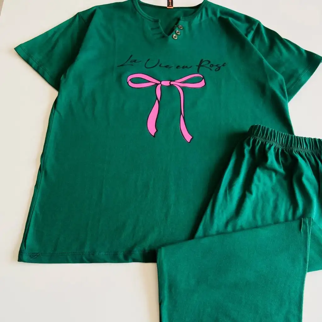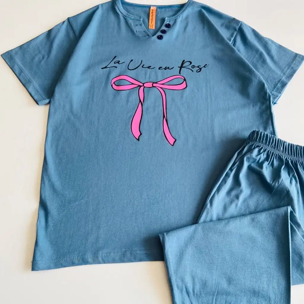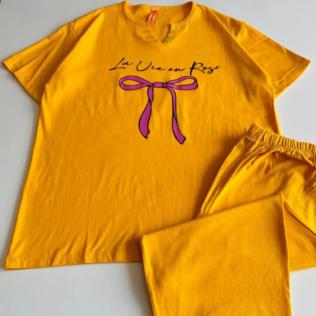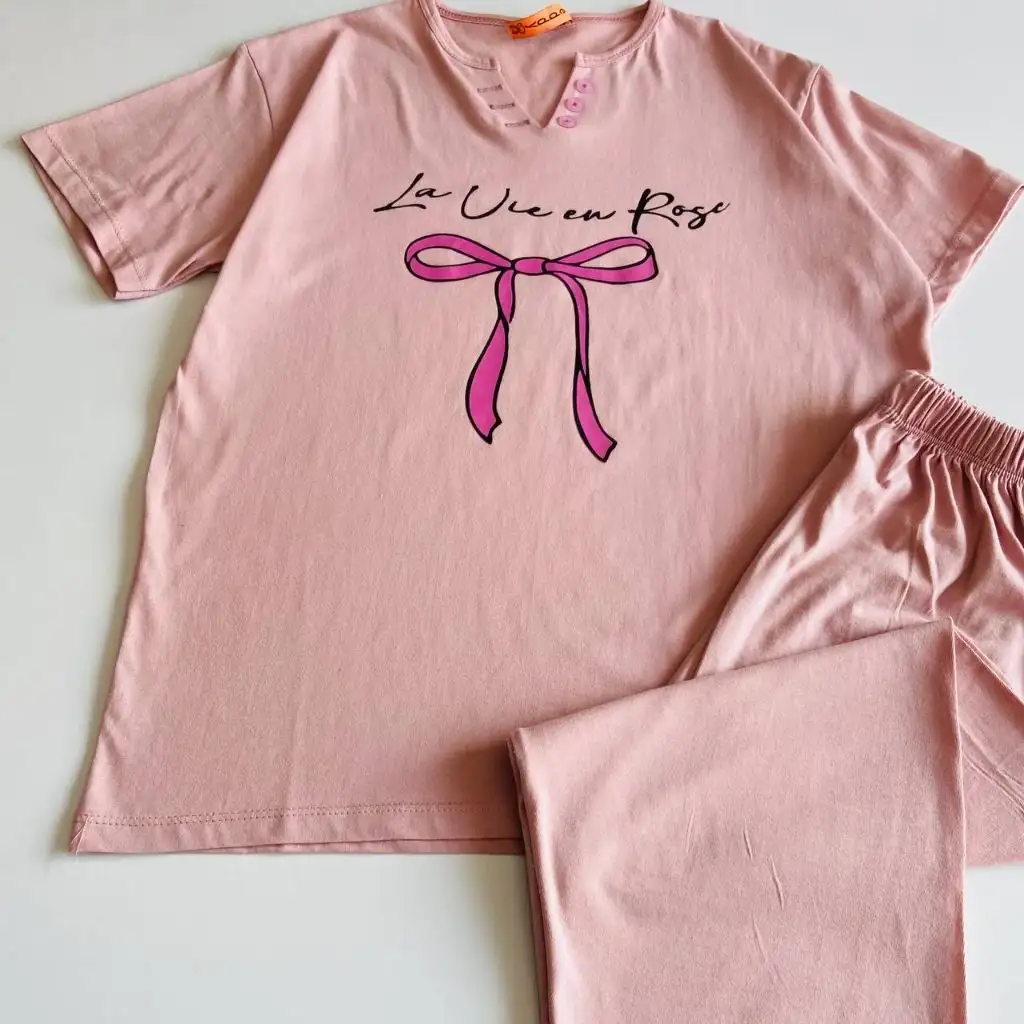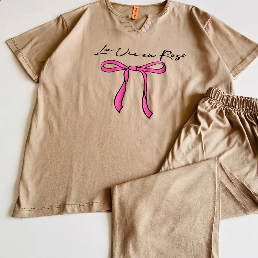 این ست با طرح پاپیون ارائه میشود و ظاهر آن حس لطافت و جذابیت ایجاد میکند. نقش پاپیون روی تیشرت جلوهای دخترانه و هماهنگ با سبک کژوال ایجاد کرده و برای استفاده روزمره، استراحت در خانه و موقعیتهای دوستانه مناسب است. این سبک باعث میشود استایل شما ظاهری مرتب، دلنشین و چشمگیر داشته باشد و بهراحتی با اکسسوریهای ساده یا رنگی هماهنگ شود.