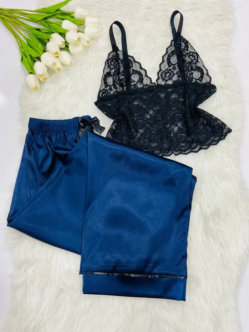 | اجزای ست | تاپ توری + شلوار ساتن |